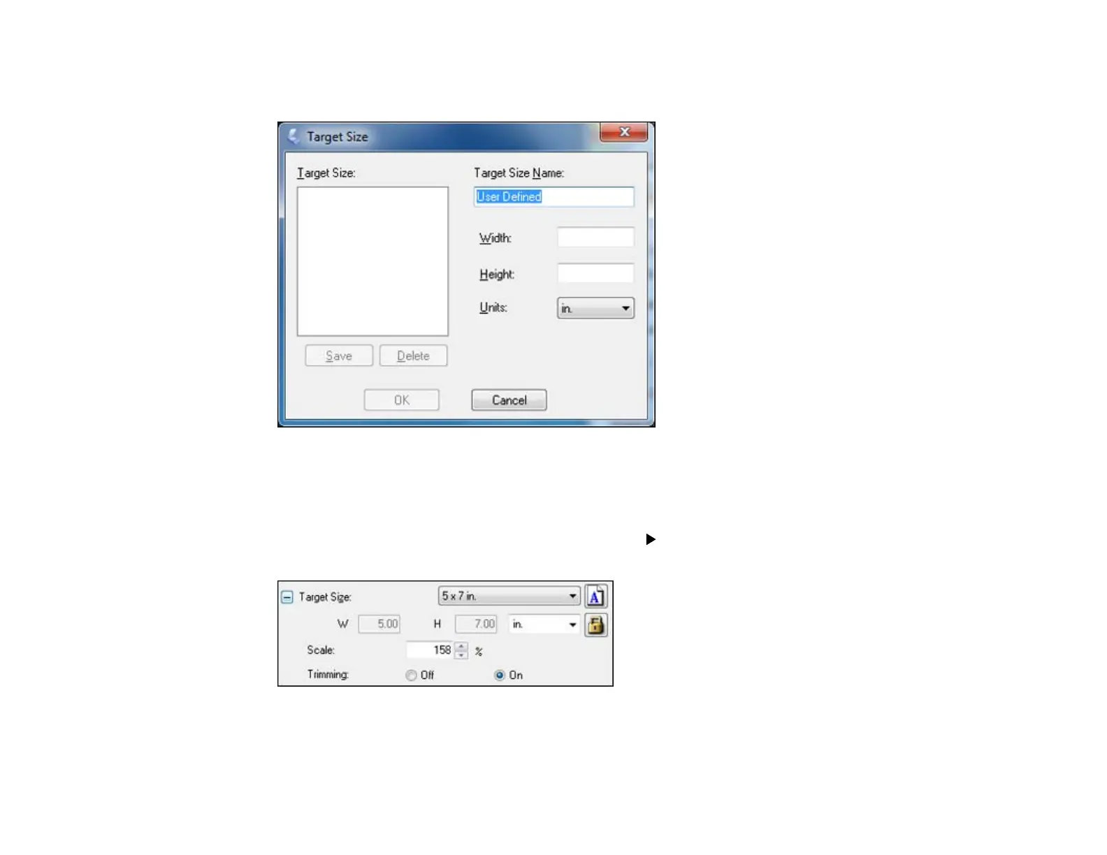 4. To create a scanned image size that is not available in the Target Size list, click the Customize