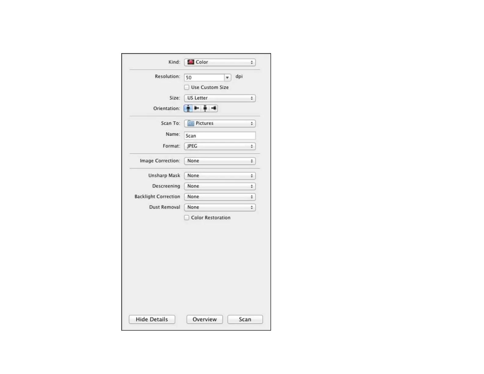 4. Select the Scan Mode setting indicating where you placed your original (if available). Select any