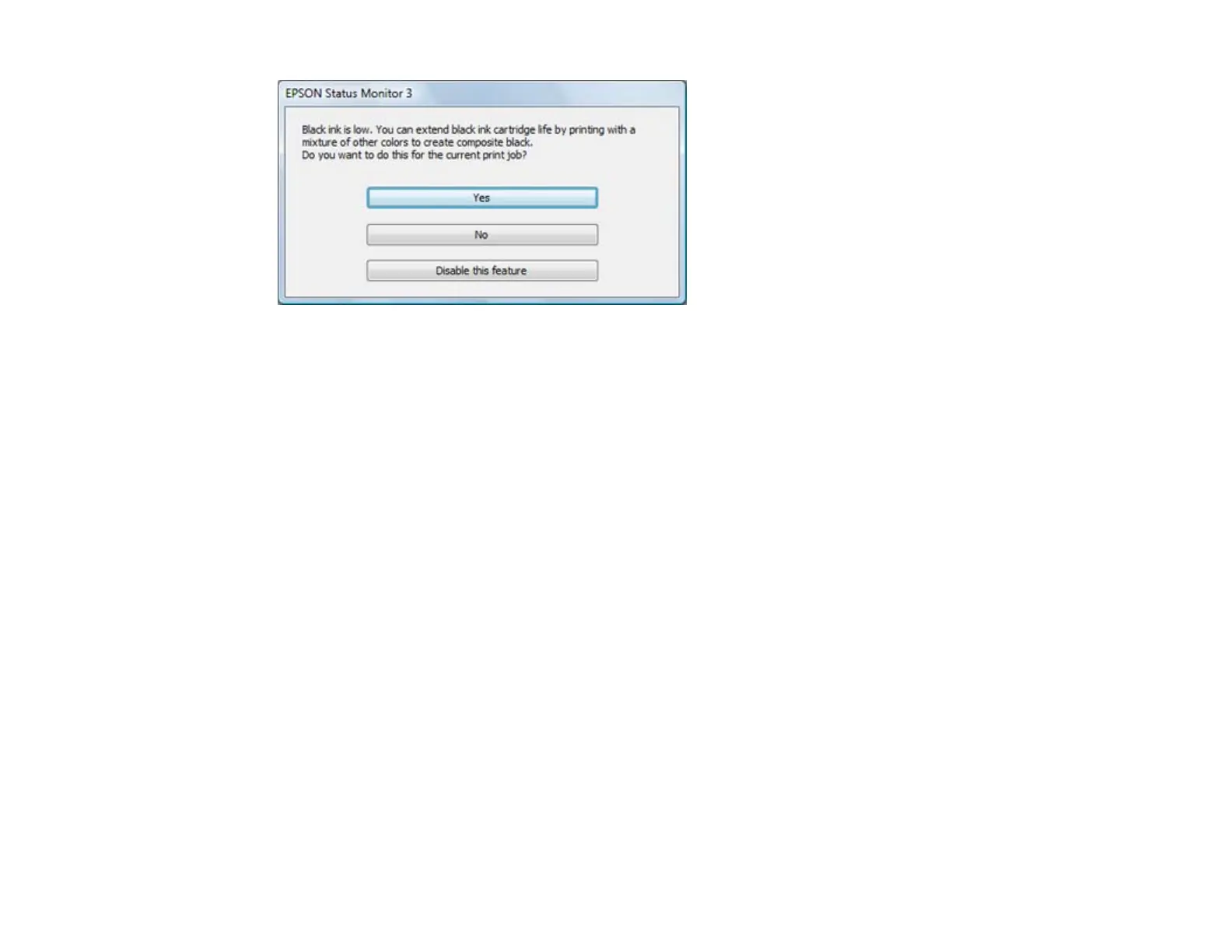 • Click Disable this feature to continue using the remaining black ink.