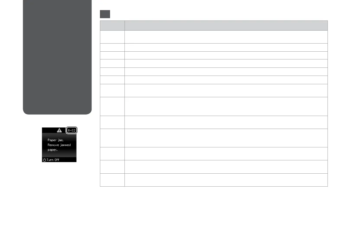 E-02 Turn the printer o and then back on. If the error message still appears, contact Epson support.