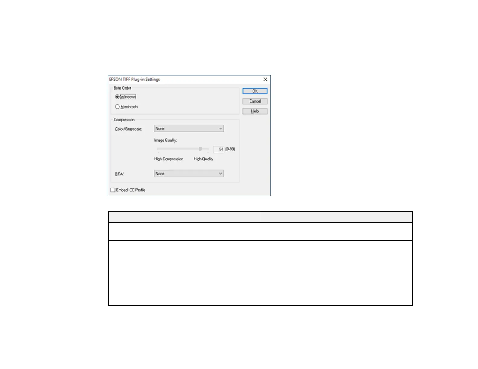Epson TIFF and Multi-TIFF File Settings