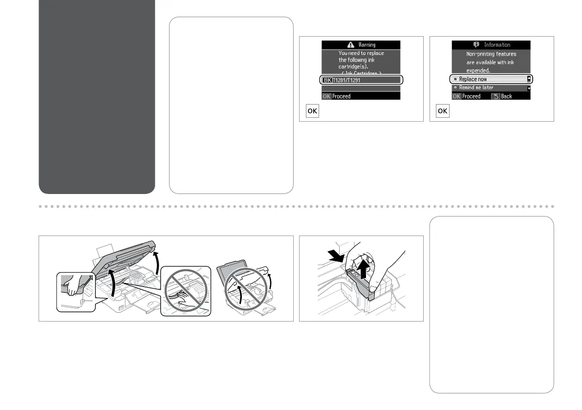 Open the scanner unit. c Never move the print head by hand.
