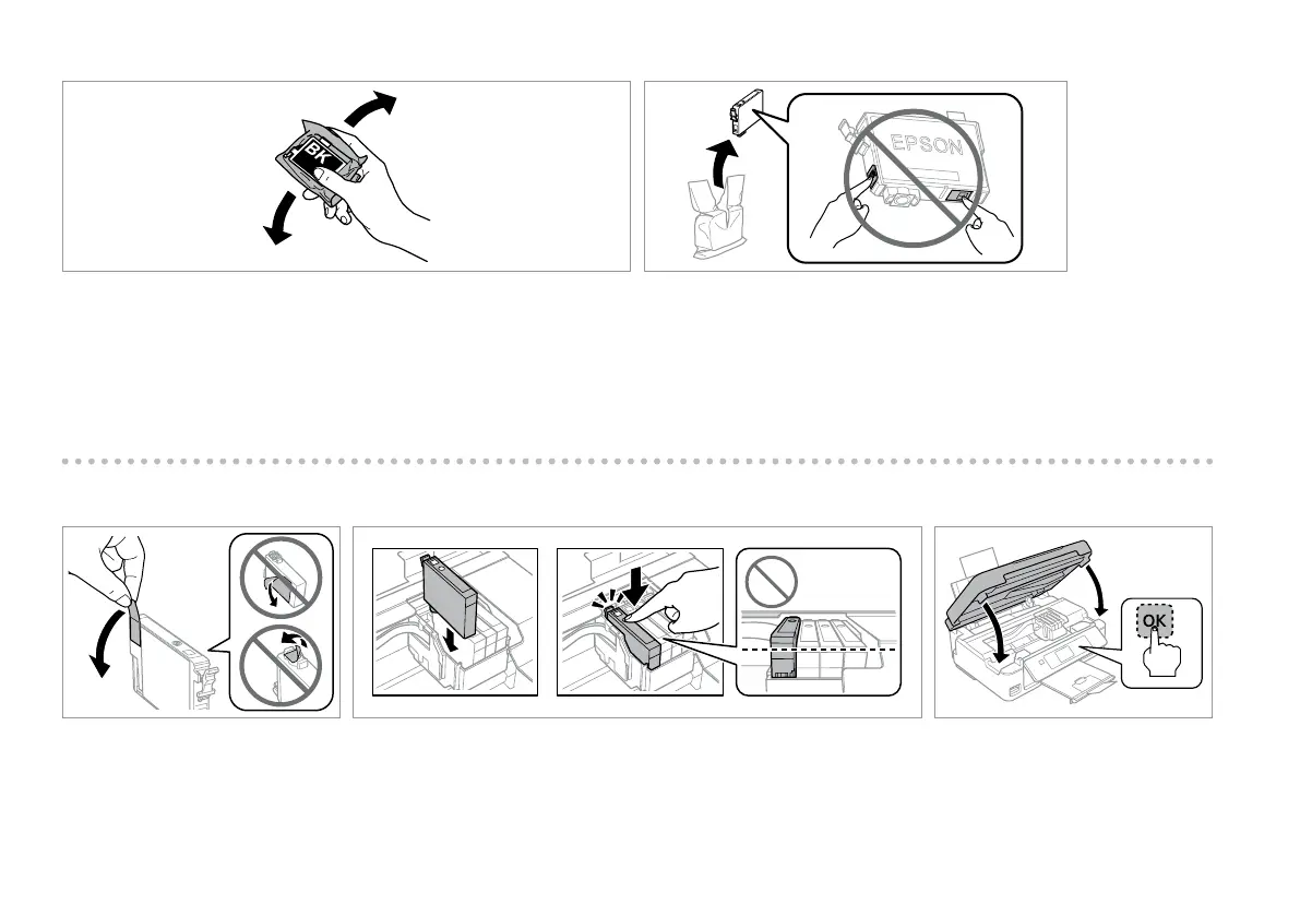 Shake only BLACK new cartridge. c Do not shake other color cartridges.