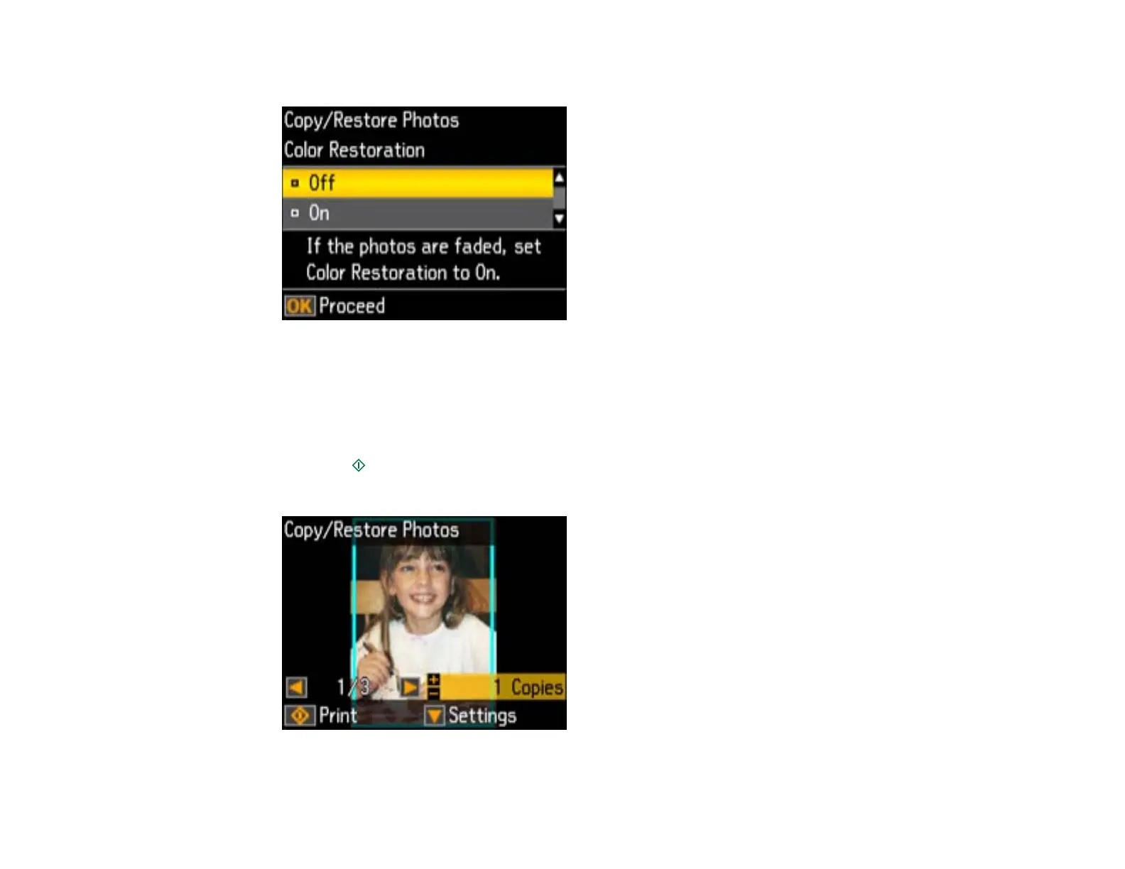 Note: Press the up or down arrow button for instructions on placing your photos on the product.