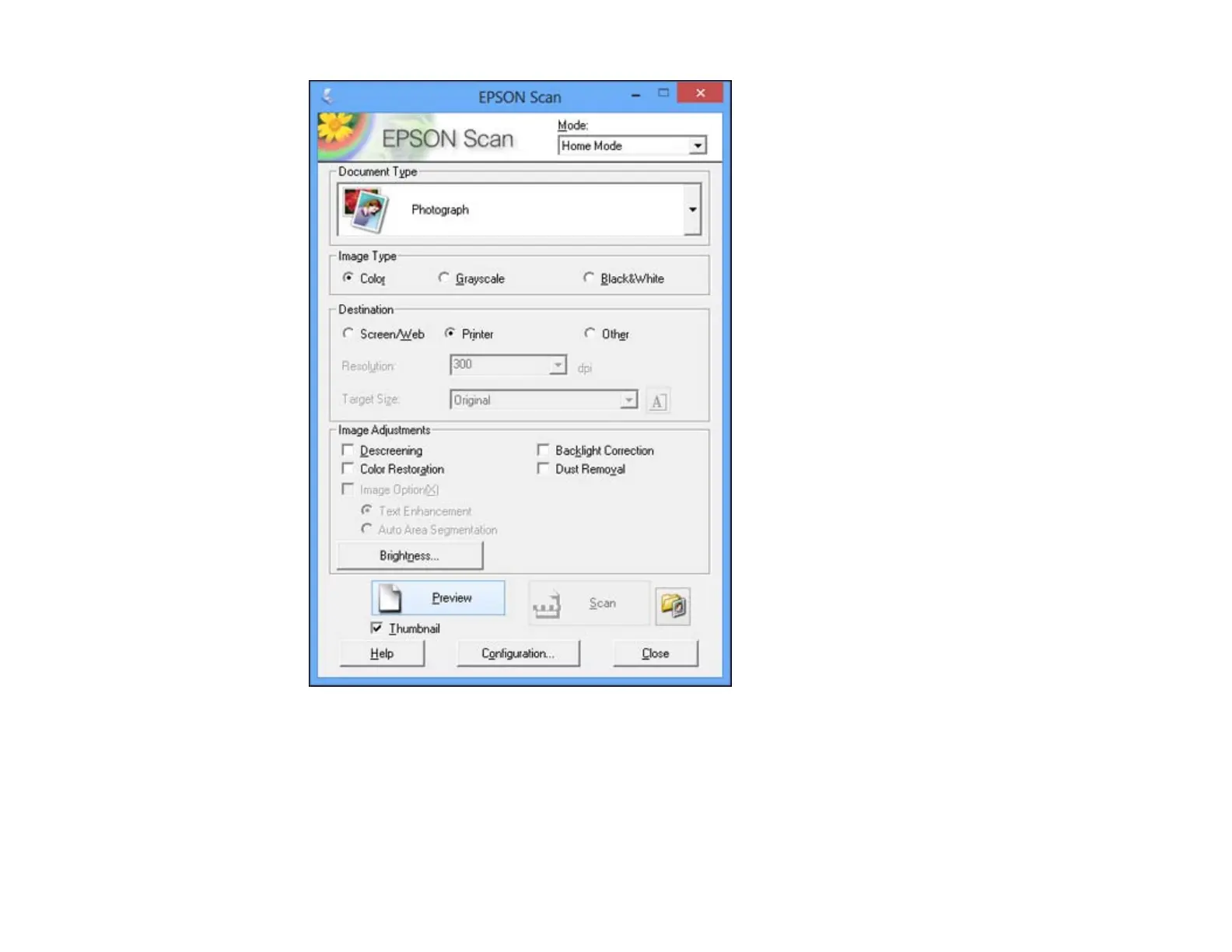 3. Select the Image Type setting that matches your original.