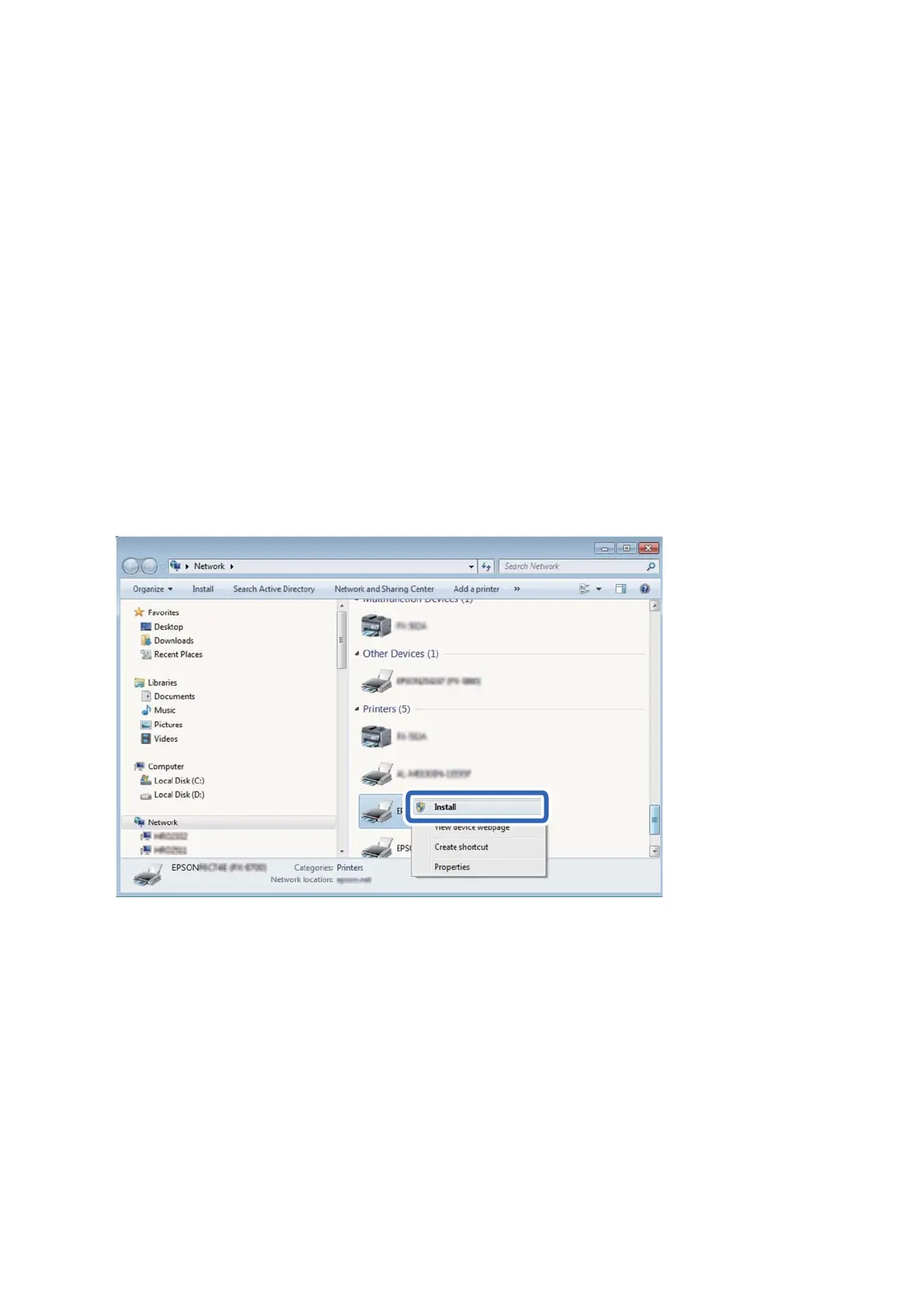 e printer name you set on the network and model name (EPSON XXXXXX (XX-XXXX)) are displayed on the