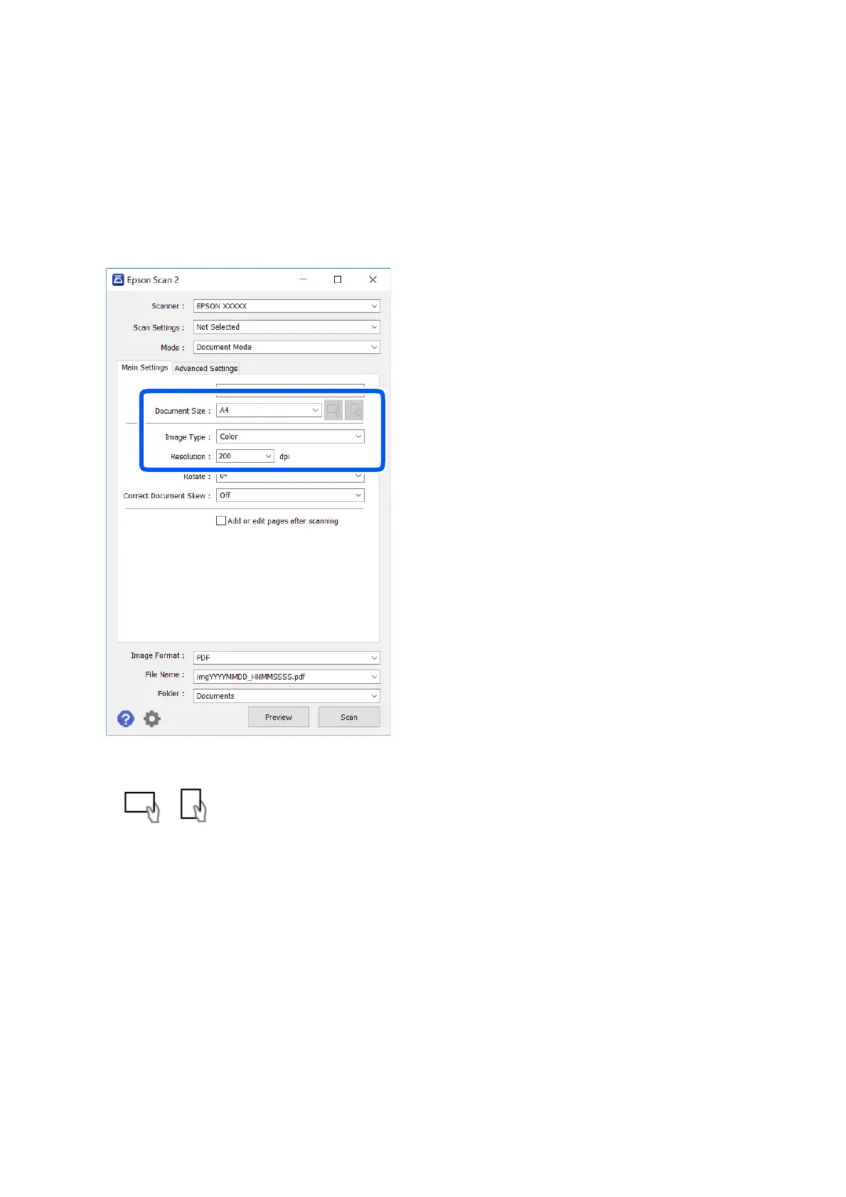 ❏ e Document Source setting is xed as Scanner Glass. You cannot change this setting.