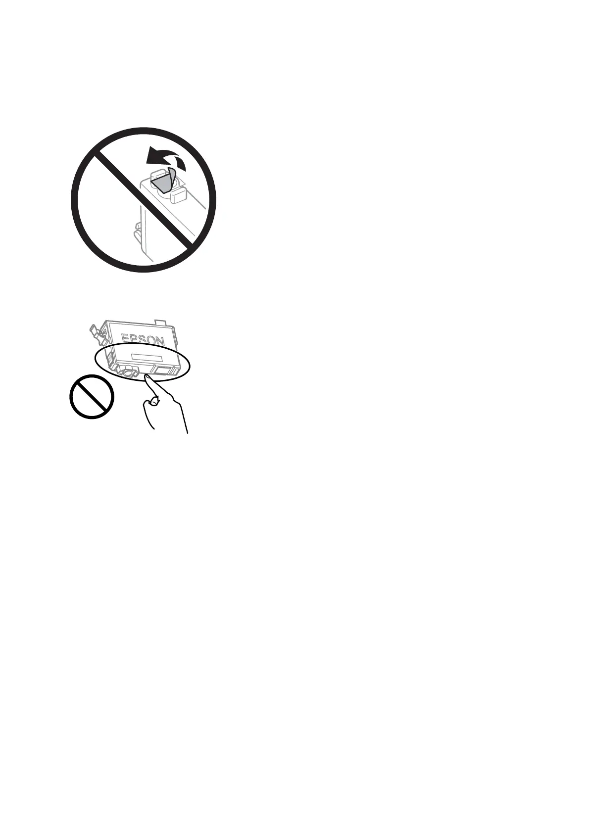 ❏ Do not touch the sections shown in the illustration. Doing so may prevent normal operation and printing.