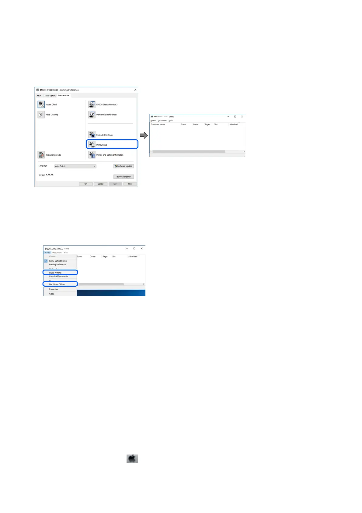 Click Print Queue on the printer driver's Maintenance tab, and then check the following.