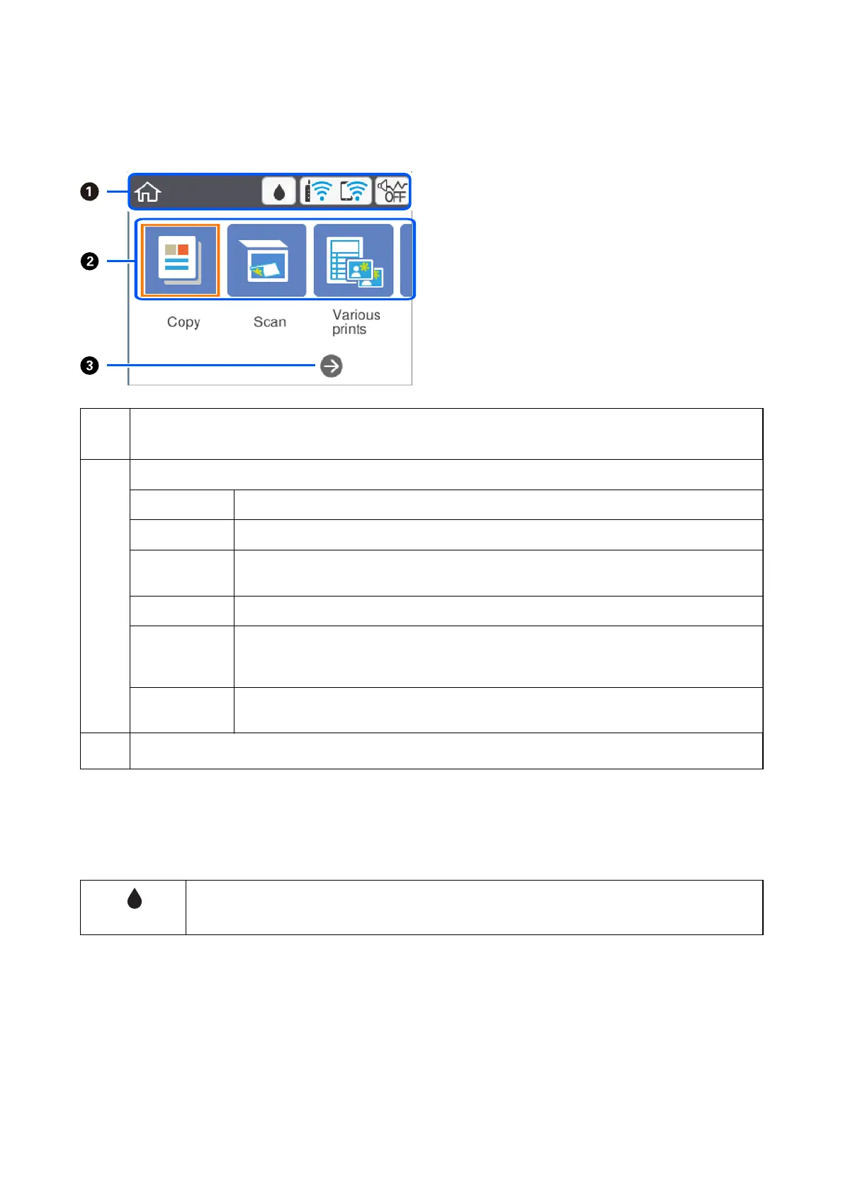 Indicates items that have been setup for the printer as icons. Select the icon by pressing the