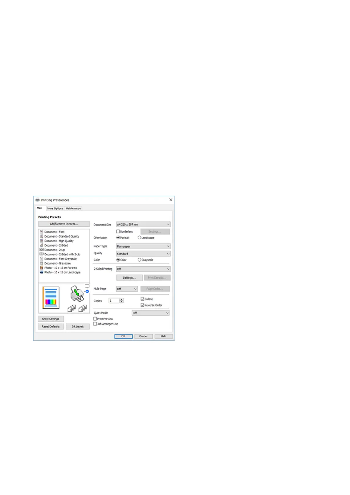 You can also make settings for printing both sides of the paper or printing multiple pages on one sheet.