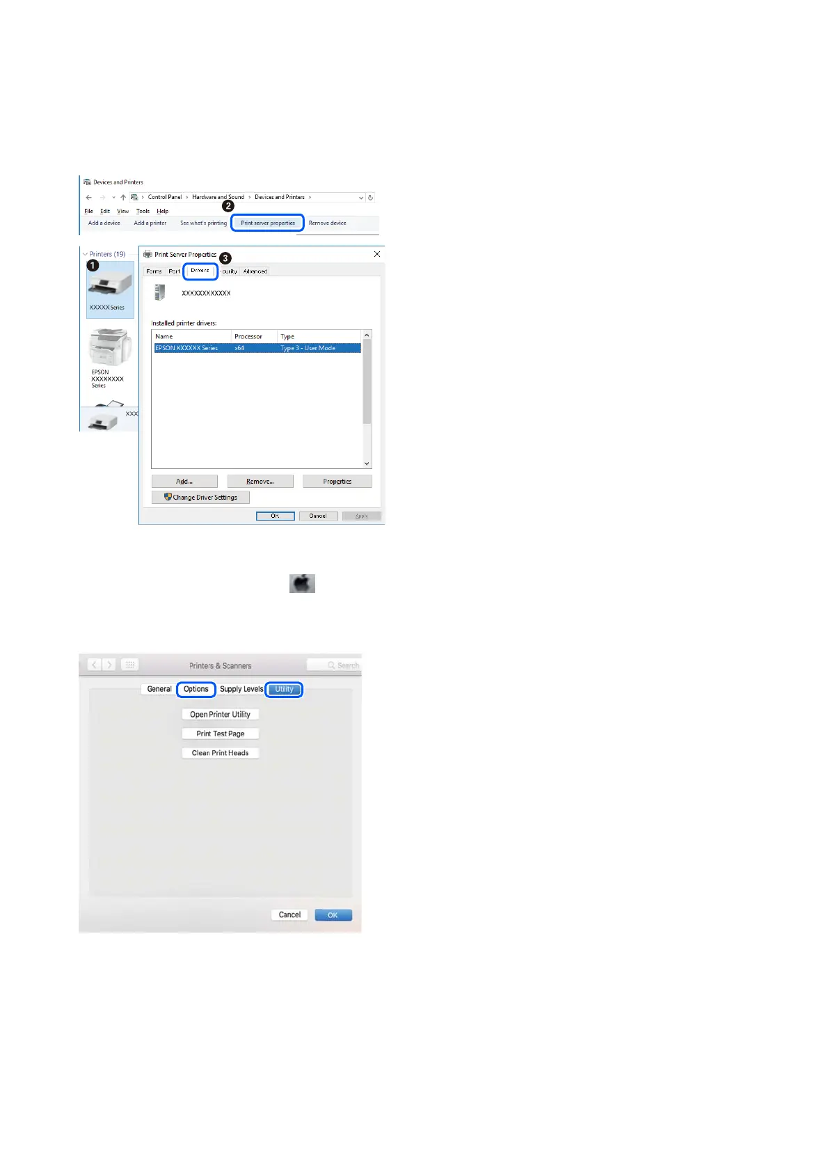 select the printer. Click Options & Supplies, and if the Options tab and Utility tab are displayed on the window, a