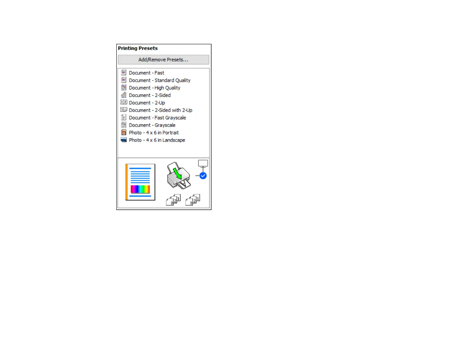 2. Place your cursor over one of the Printing Presets to view its list of settings.