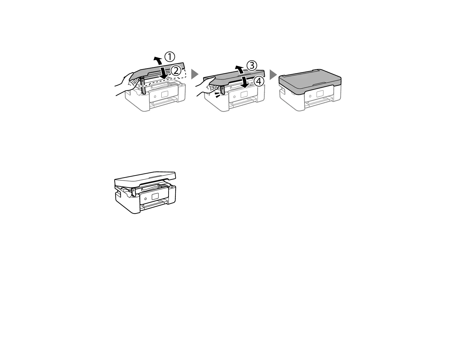 Note: The scanner unit cannot be opened from the position shown below. Close it completely before