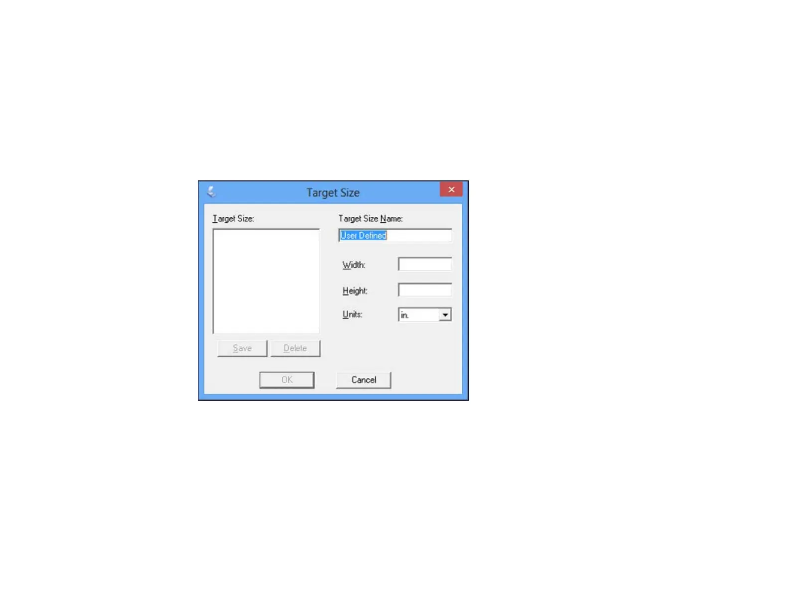 4. To create a scanned image size that is not available in the Target Size list, click the Customize