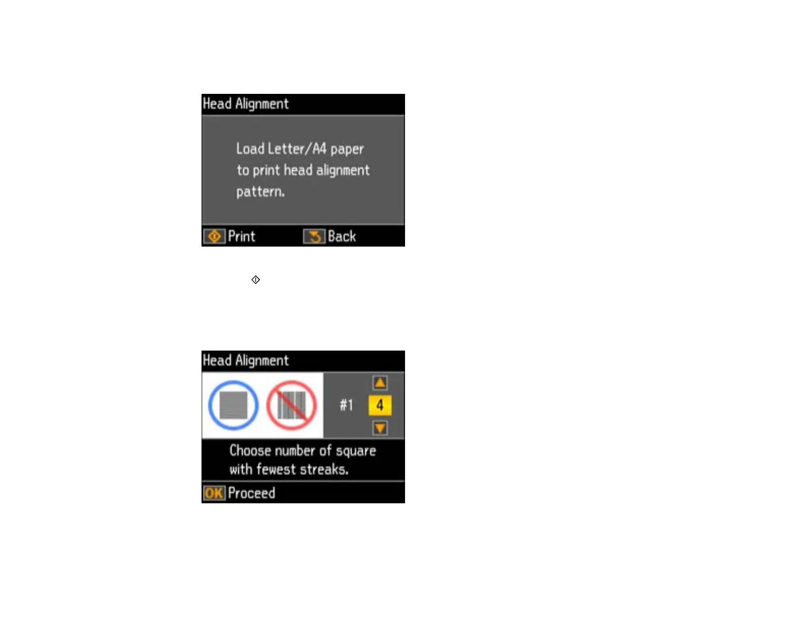 5. Press the up or down arrow button to select Head Alignment and press the OK button.
