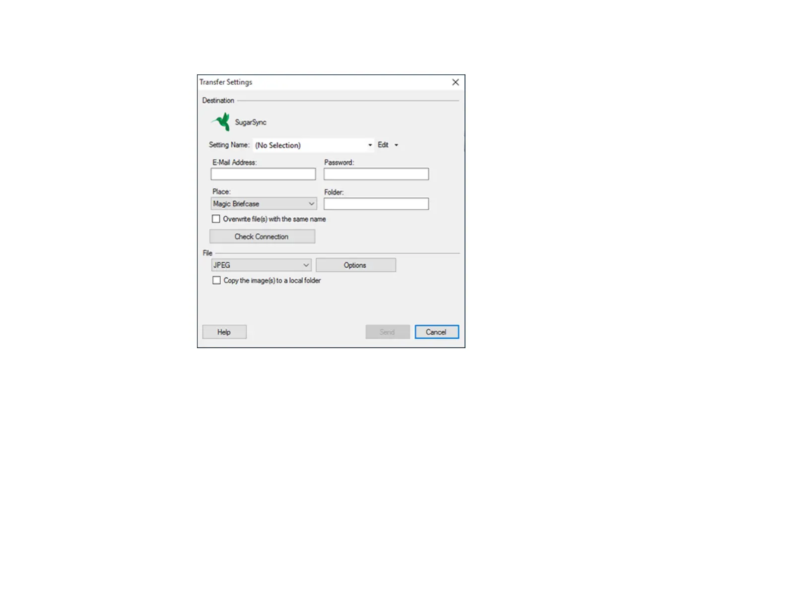 Note: If you have already configured a SugarSync account in Easy Photo Scan, you can select the