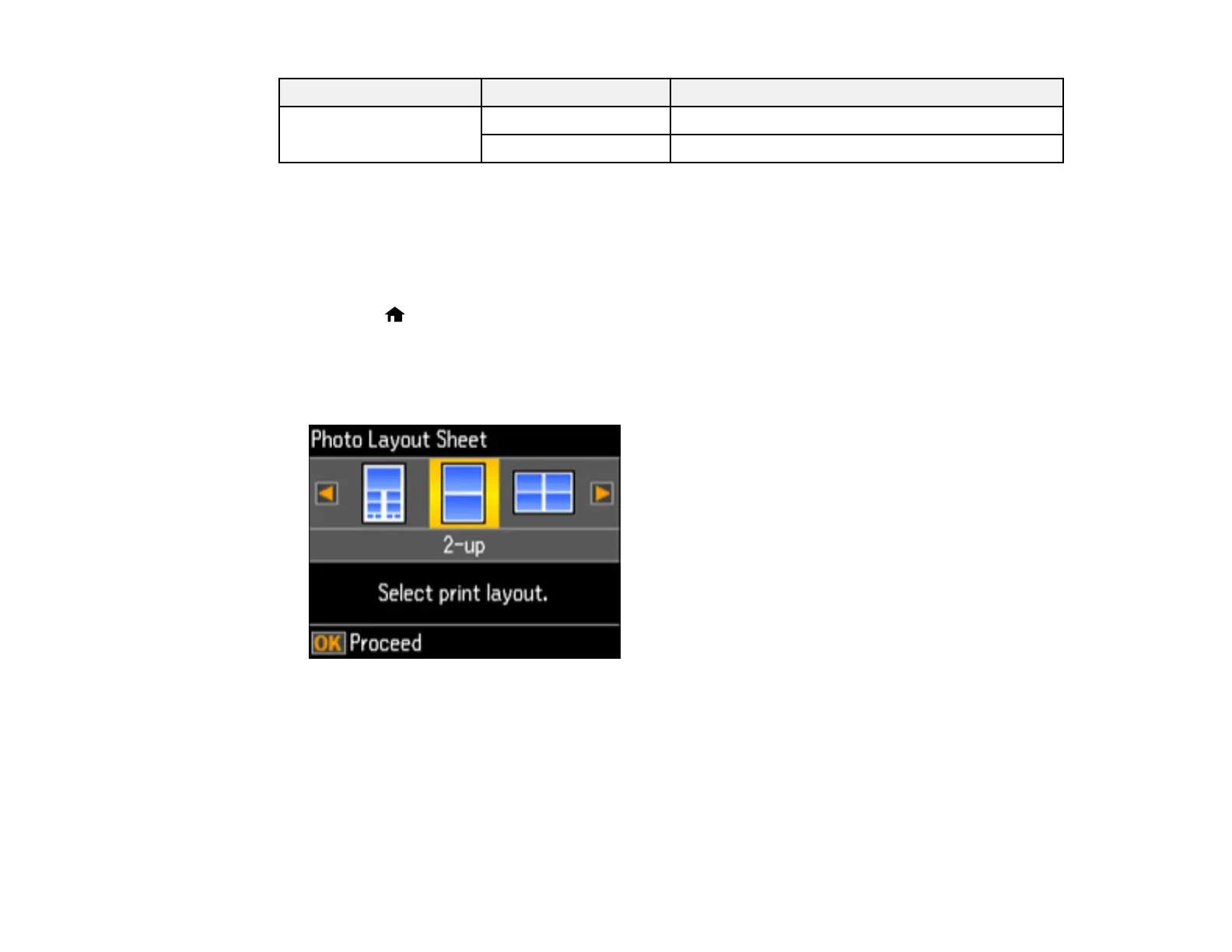 4. Press the up or down arrow button to select Photo Layout Sheet and press the OK button.