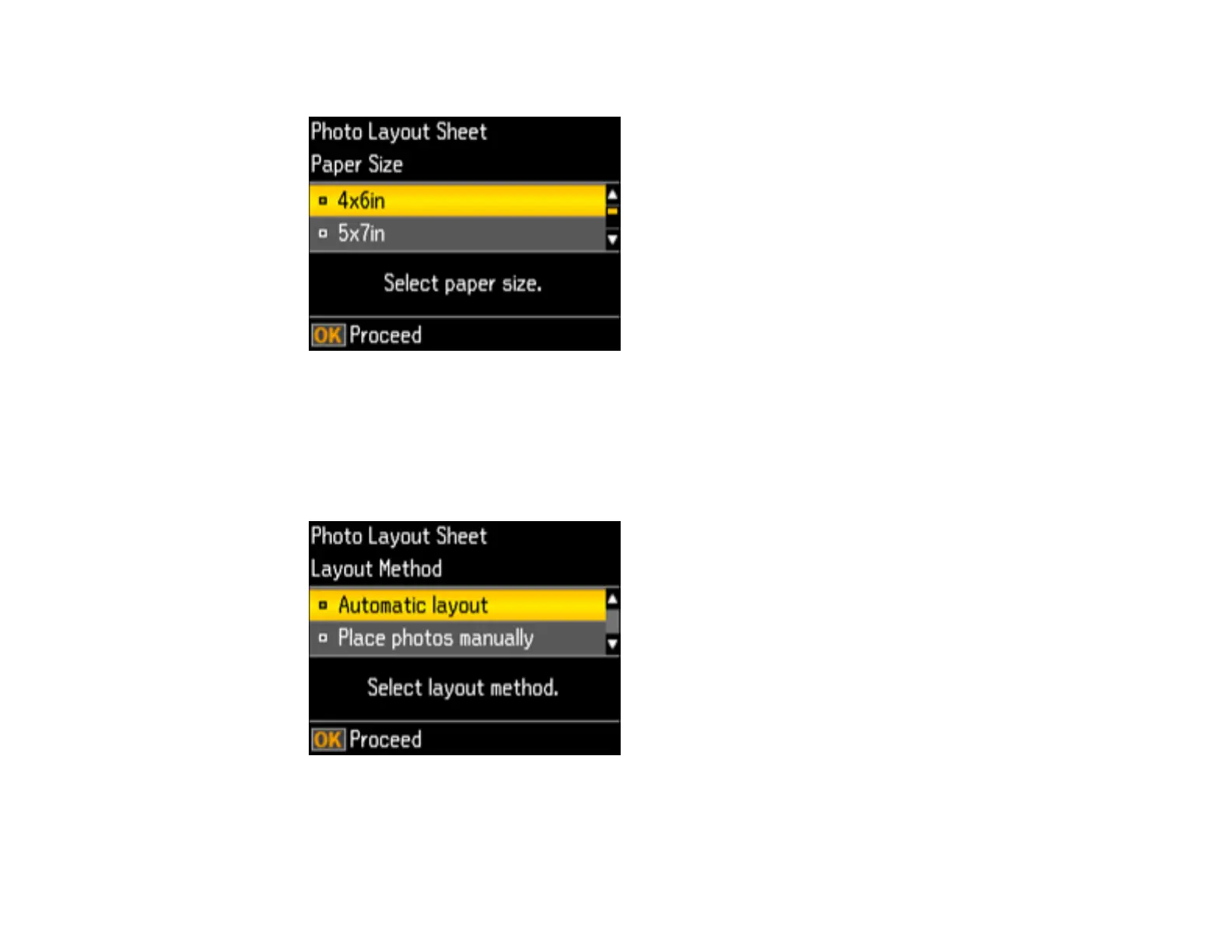 7. Press the up or down arrow button to select the Paper Type setting that matches the paper you