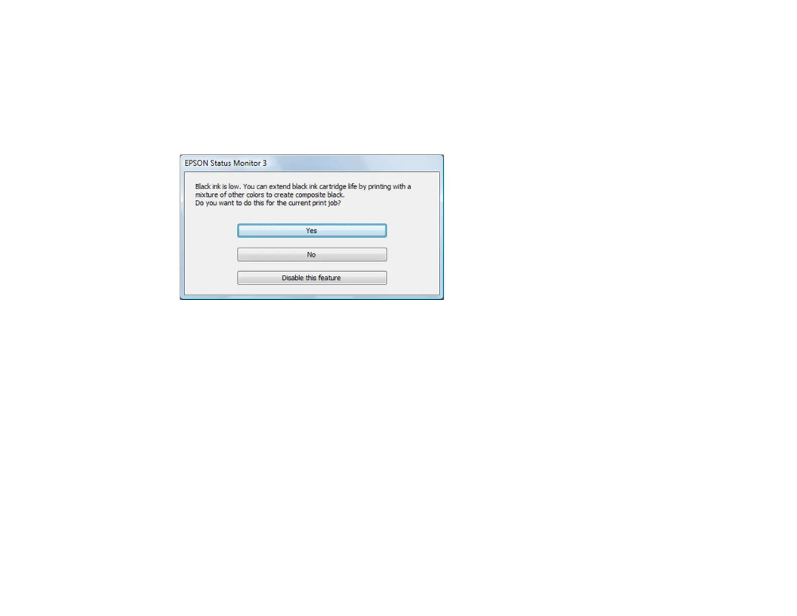 • Click Yes to use a mixture of color inks to create black, or No to continue using the remaining black ink