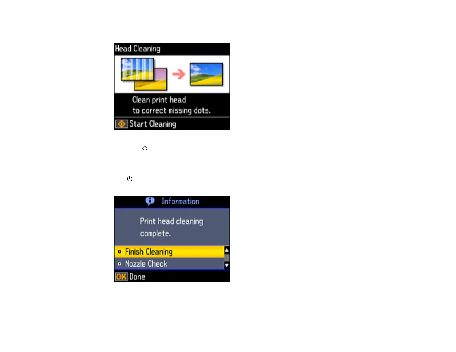 7. Select Nozzle Check and press the OK button to run a nozzle check to confirm that the print head is
