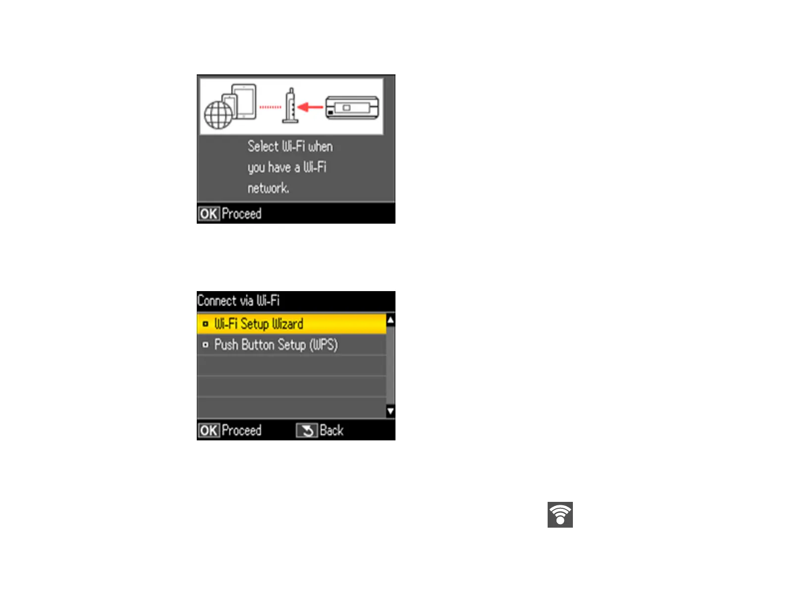 If the network connection is successful, a Wi-Fi icon with connection bars is displayed in the
