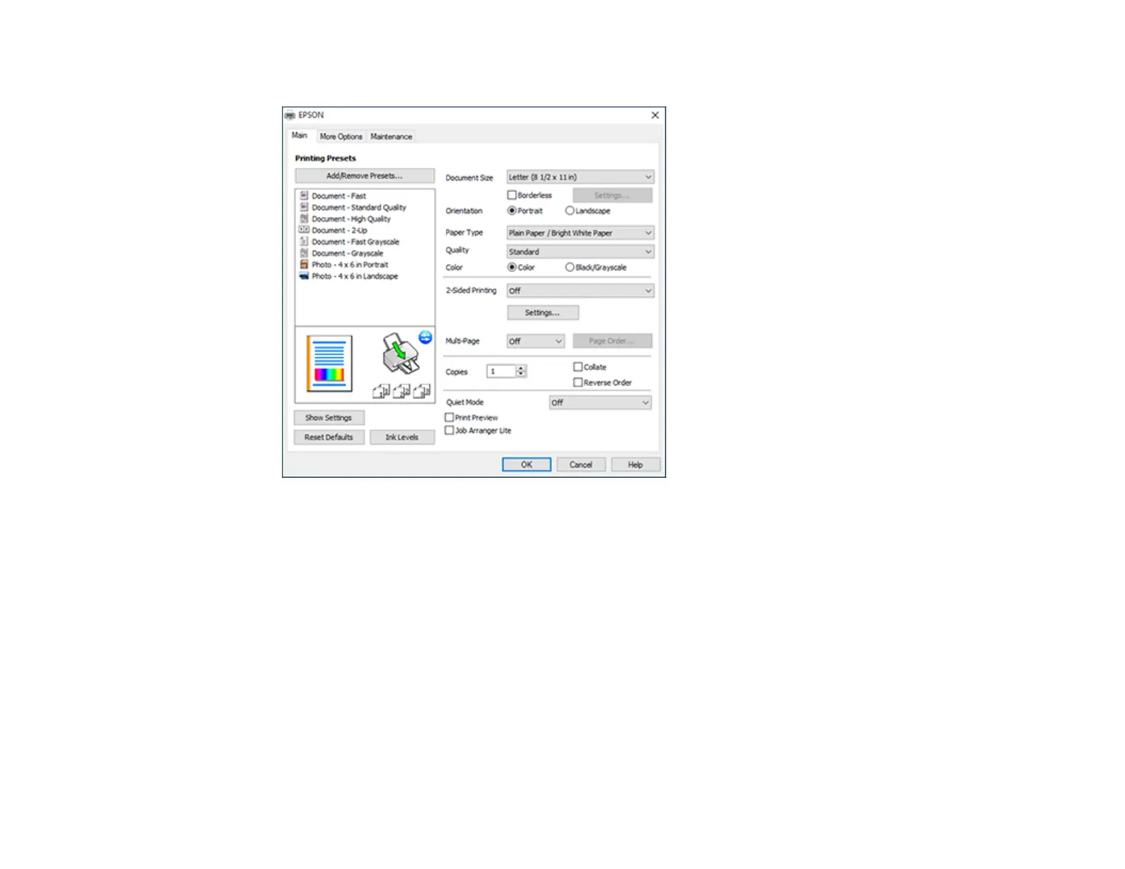 3. Select the print settings you want to use as defaults in all your Windows programs.