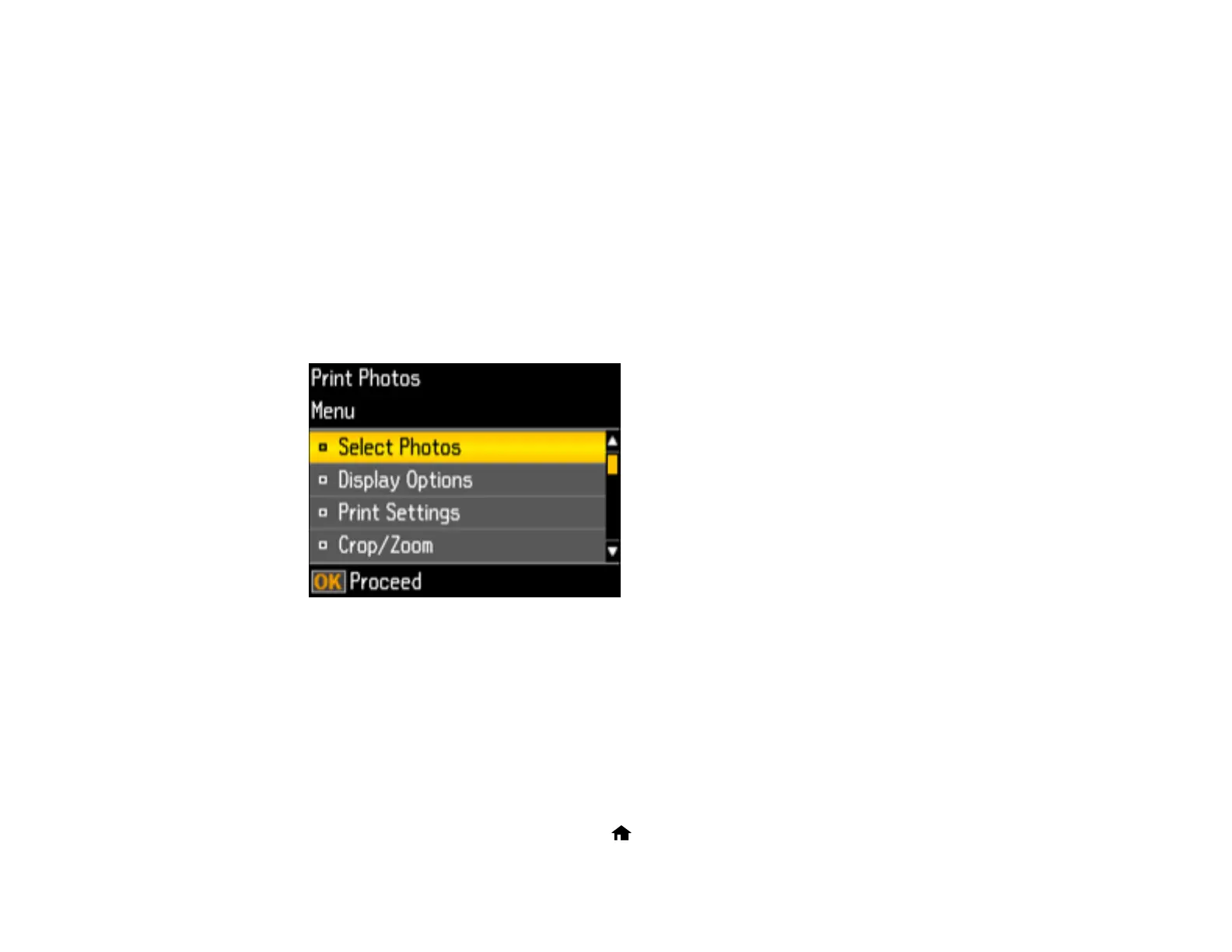 • To change the selected photos and number of copies to print, select Select Photos, press the OK