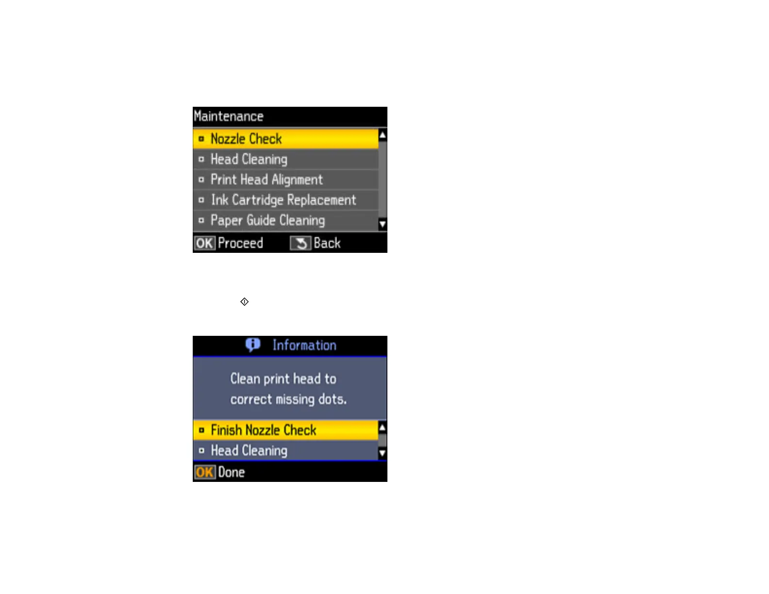 5. Press the up or down arrow button to select Maintenance and press the OK button.
