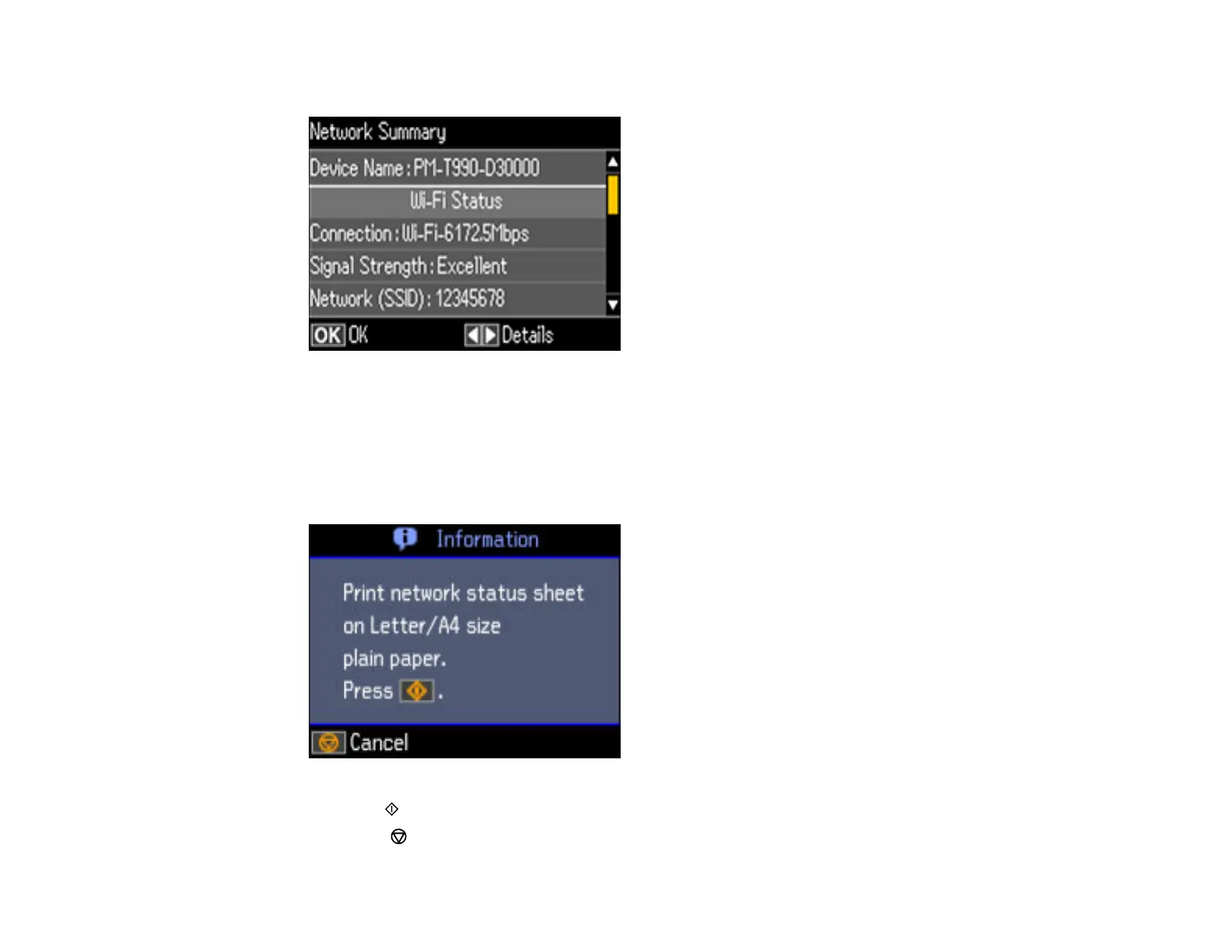 6. Press the up or down arrow button to select Print Status Sheet and press the OK button.