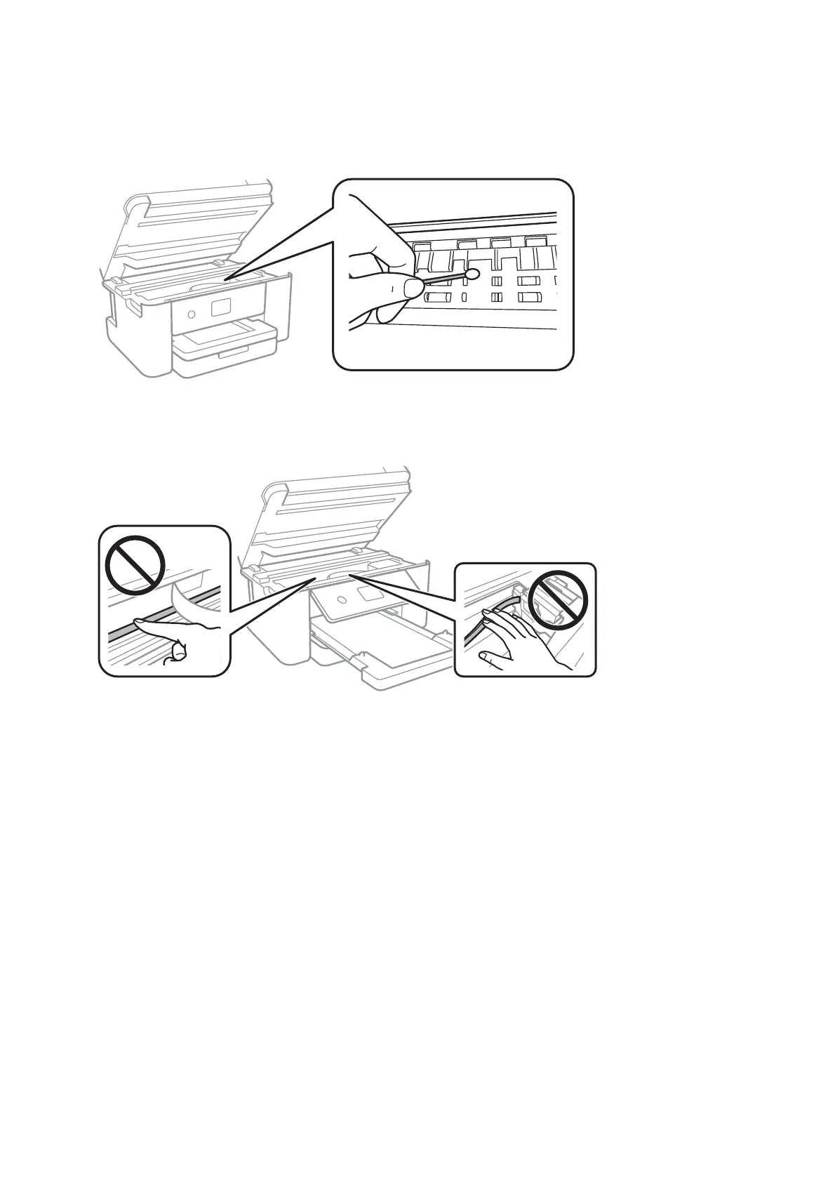 ❏ When the problem cannot be cleared aer cleaning the paper path, the part inside the printer that is shown in