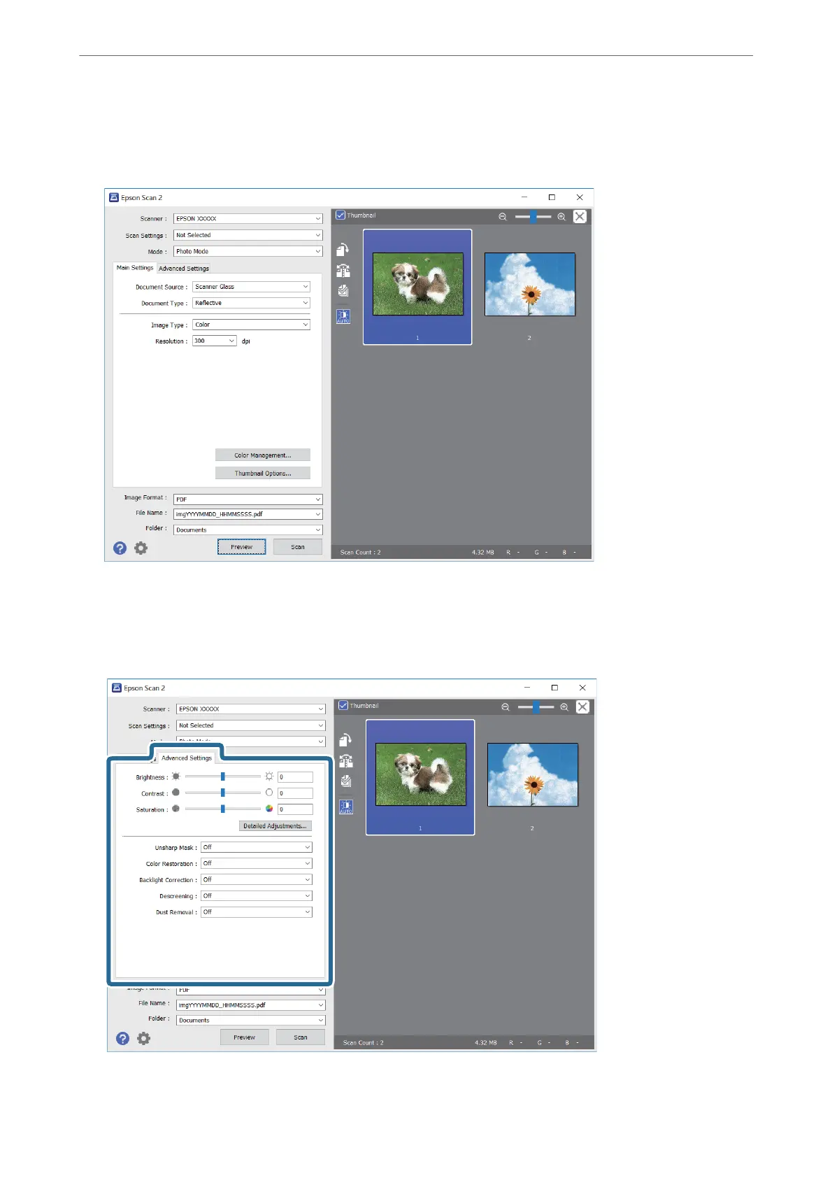 Conrm the preview, and make image adjustment settings on the Advanced Settings tab if necessary.