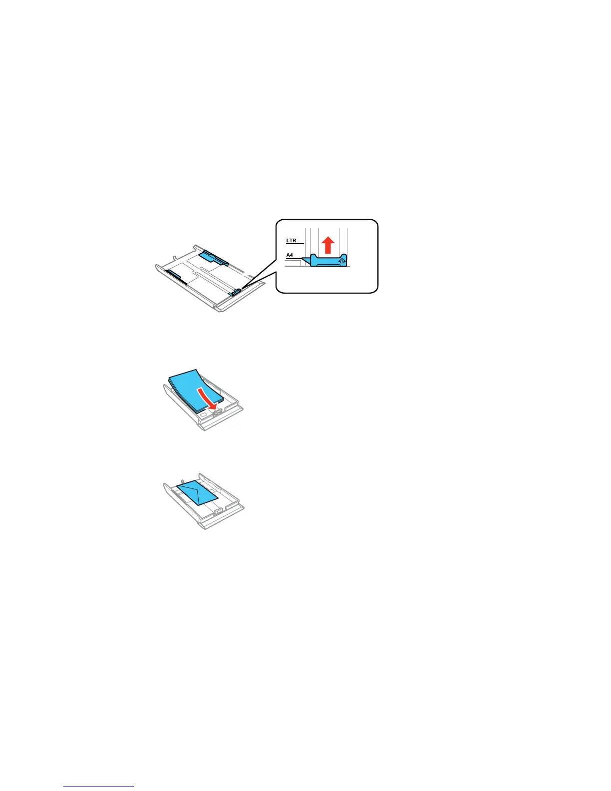 • Insert up to 10 envelopes, printable side facedown and flap edge left, as shown.