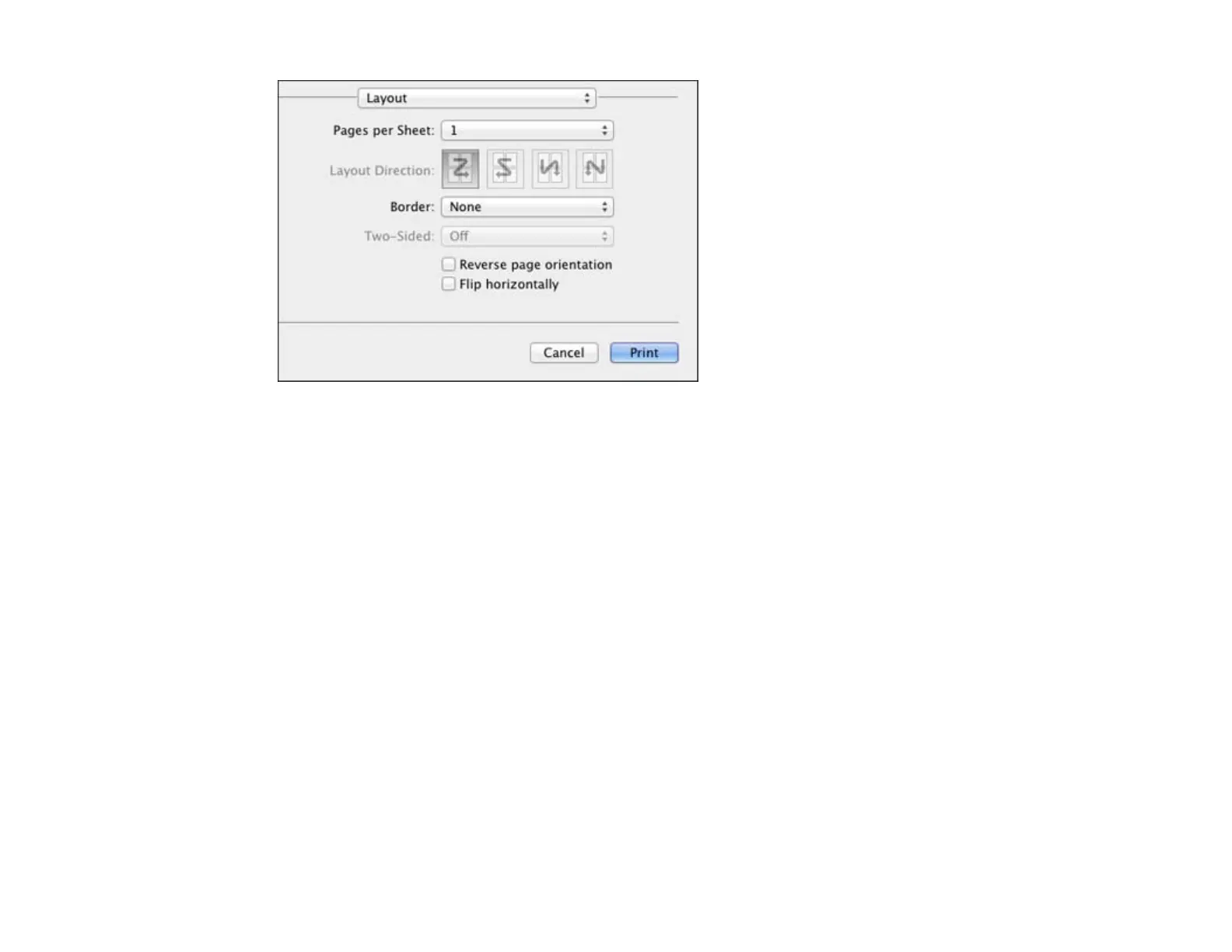pop-up menu. To arrange the print order of the pages, select a Layout Direction setting.