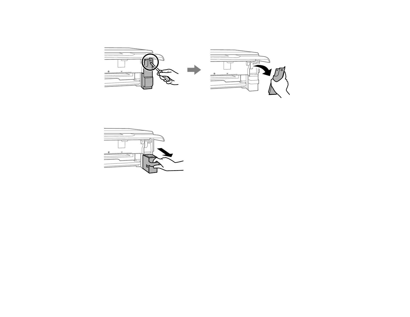 6. Grasp the maintenance box as shown and pull it out of its holder.