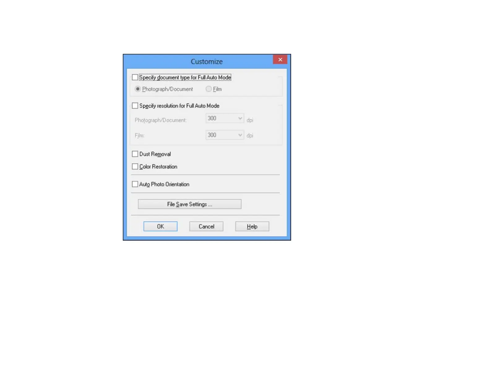 • To change the scanned file settings, click File Save Settings.