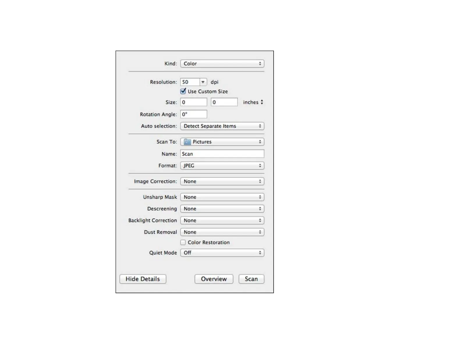 4. Select the Scan Mode setting indicating where you placed your original (if available). Select any