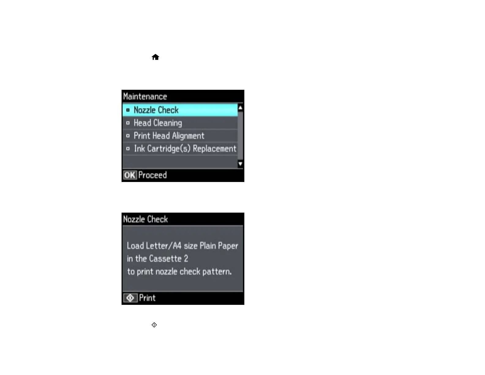 5. Press the arrow buttons to select Maintenance, then press OK.