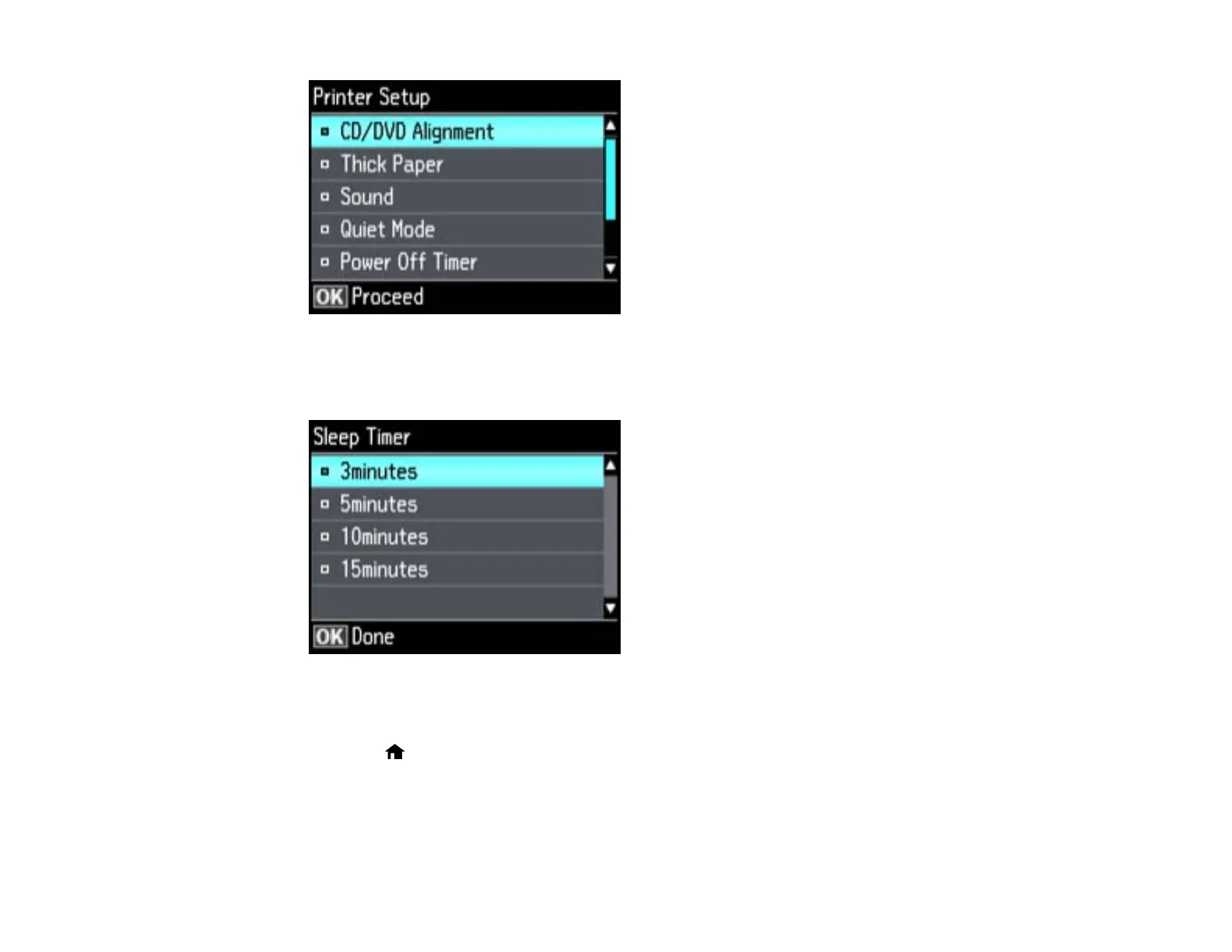 4. Press the down arrow button, select Sleep Timer, and then press OK.
