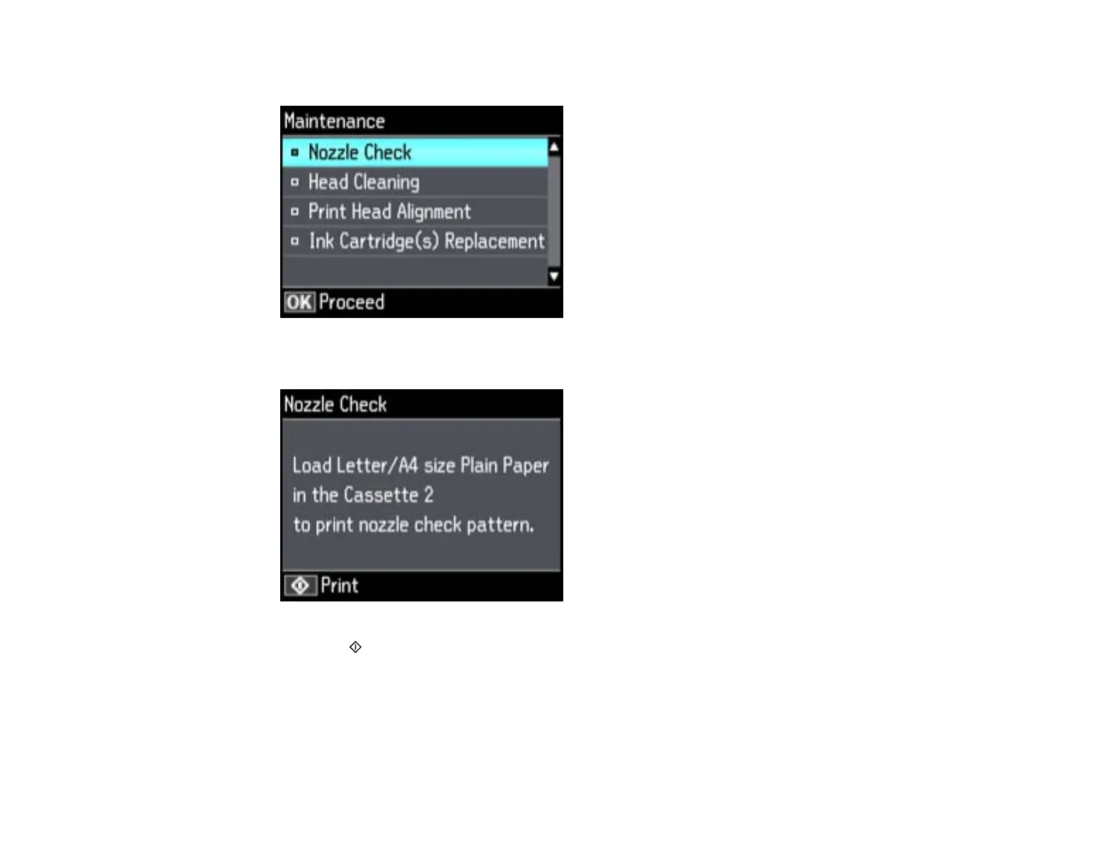 5. Press the arrow buttons to select Maintenance, then press OK.