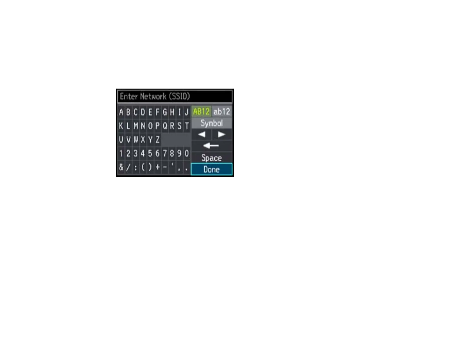 • To change the case of letters or select symbols, select AB12 (uppercase), ab12 (lowercase), or