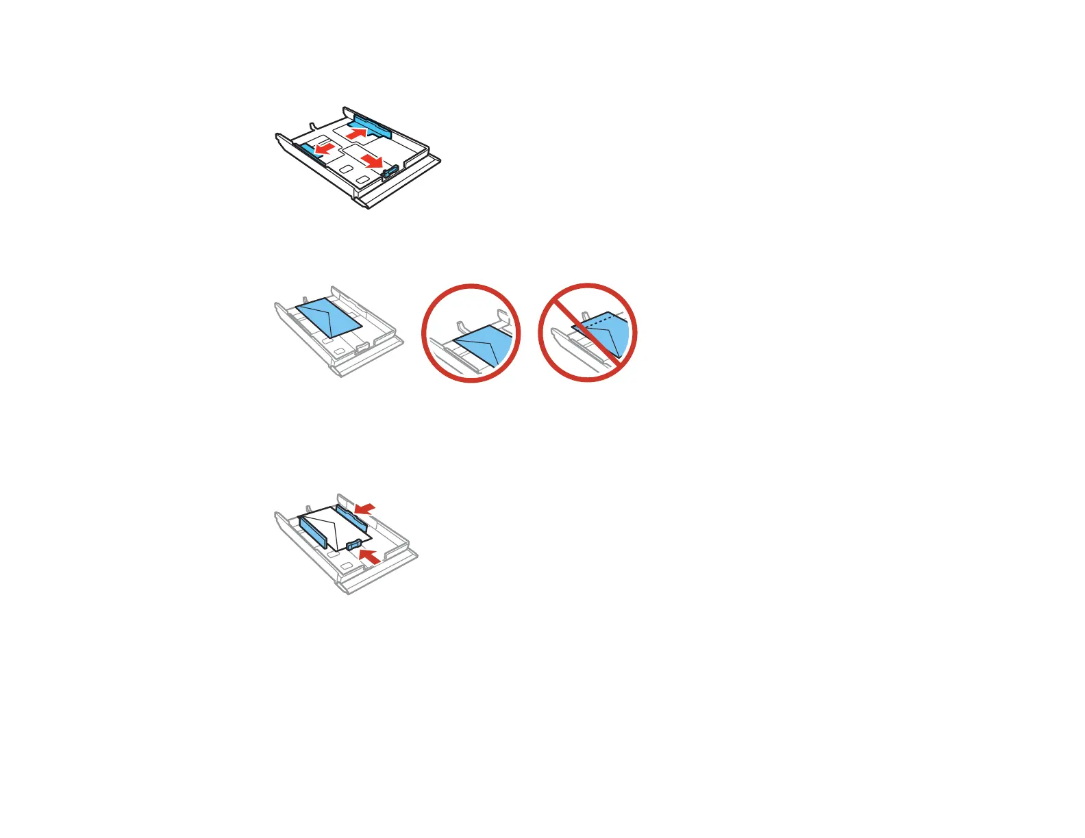 Note: Make sure the envelopes are under the tabs on the edge guides.
