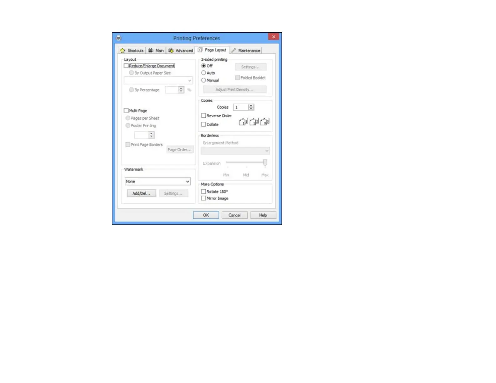• To print multiple pages on one sheet of paper, or print one image on multiple sheets of paper, select