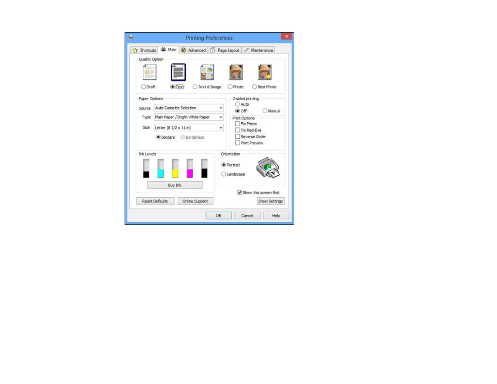 3. Select the print settings you want to use as defaults in all your Windows programs.