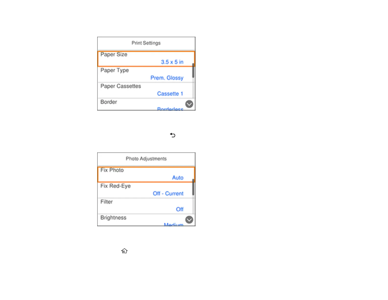 5. Select the paper and print settings you want to use.