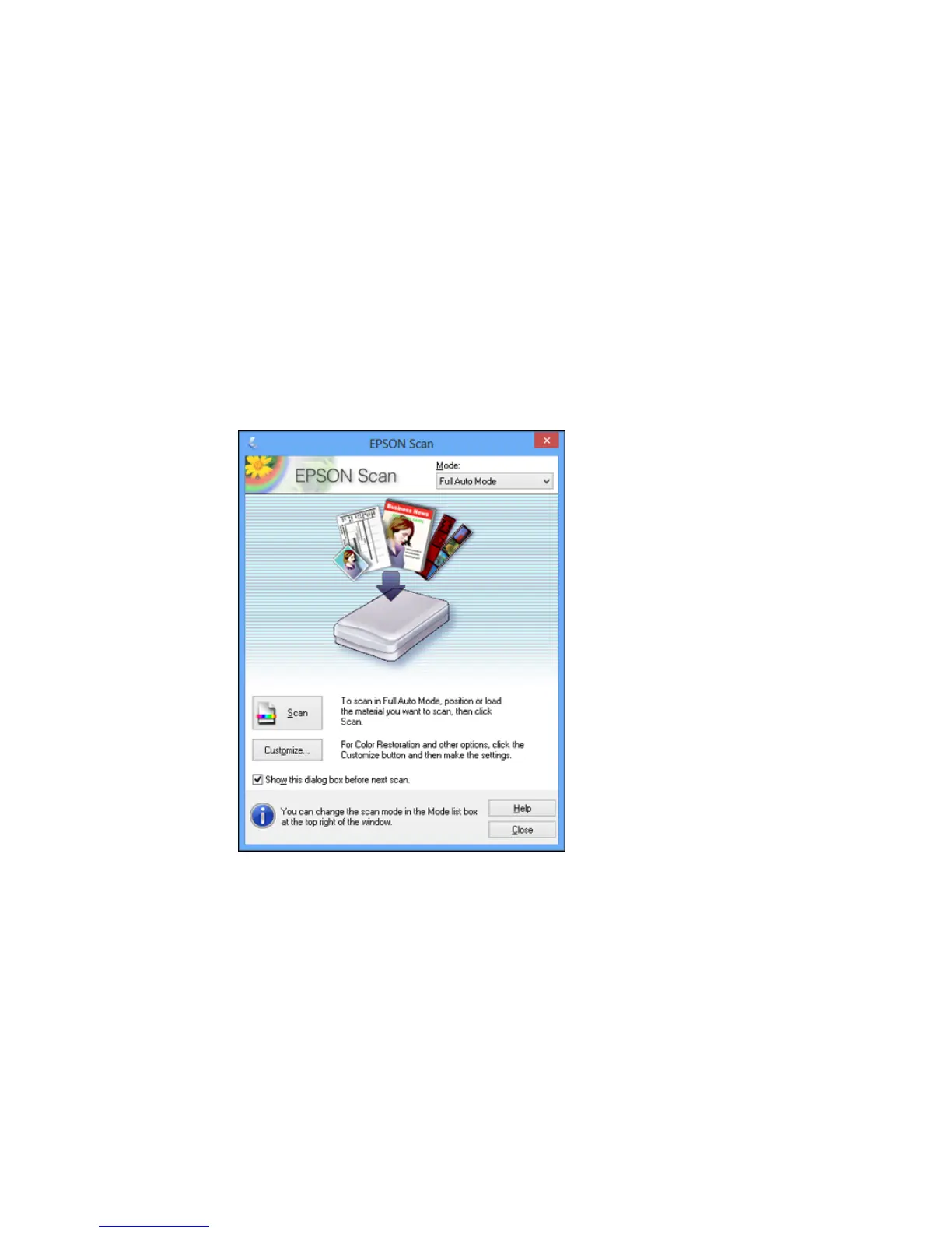 You see an Epson Scan window like this: