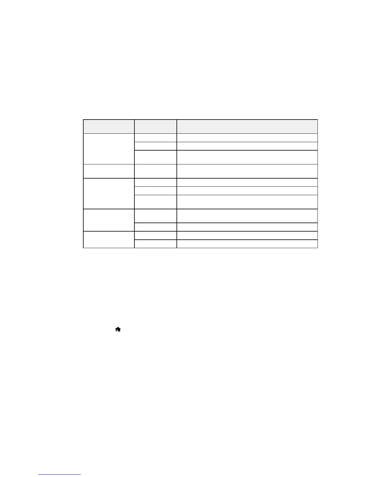 Print settings Available Description