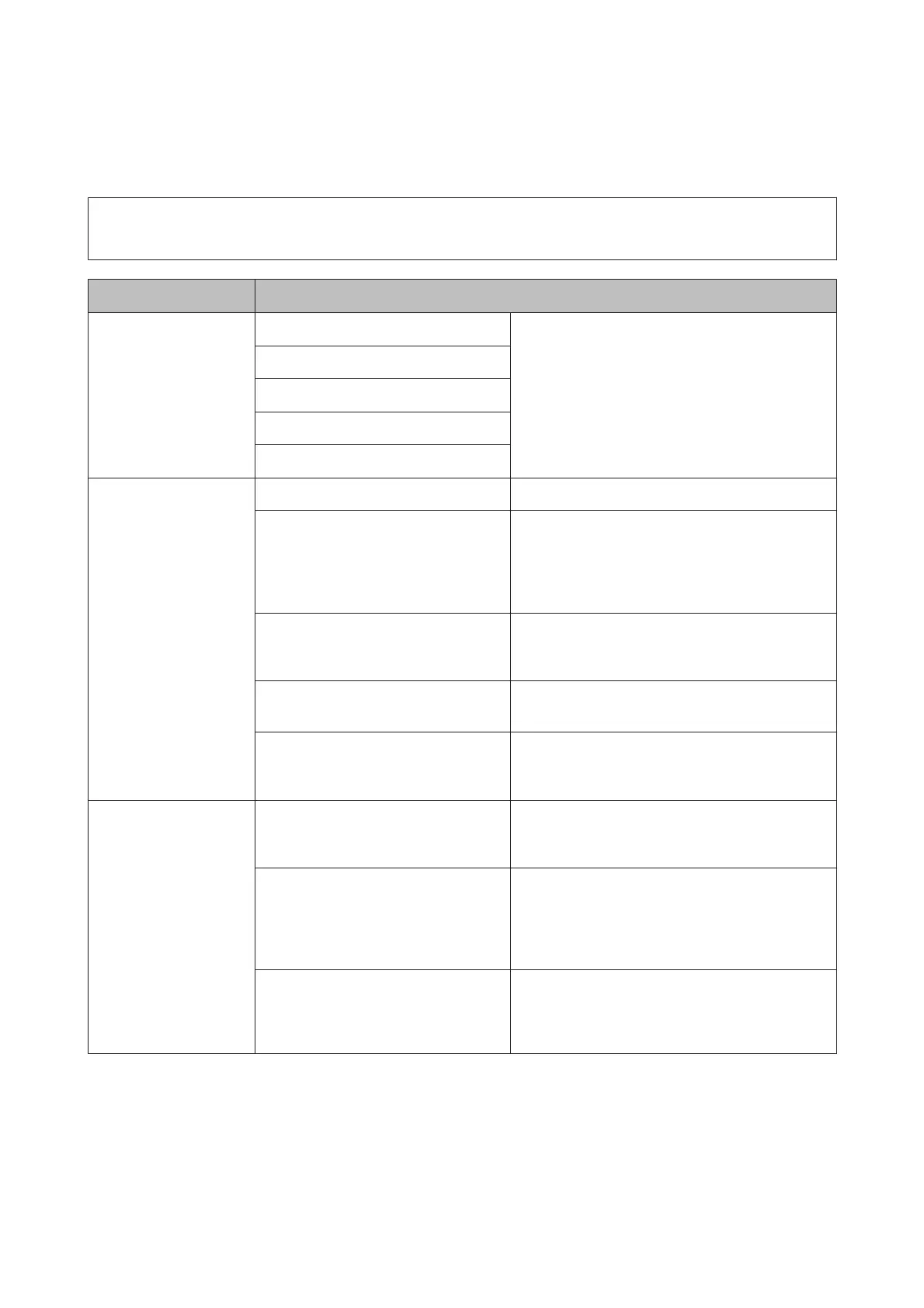 Menu Setting Item and Description