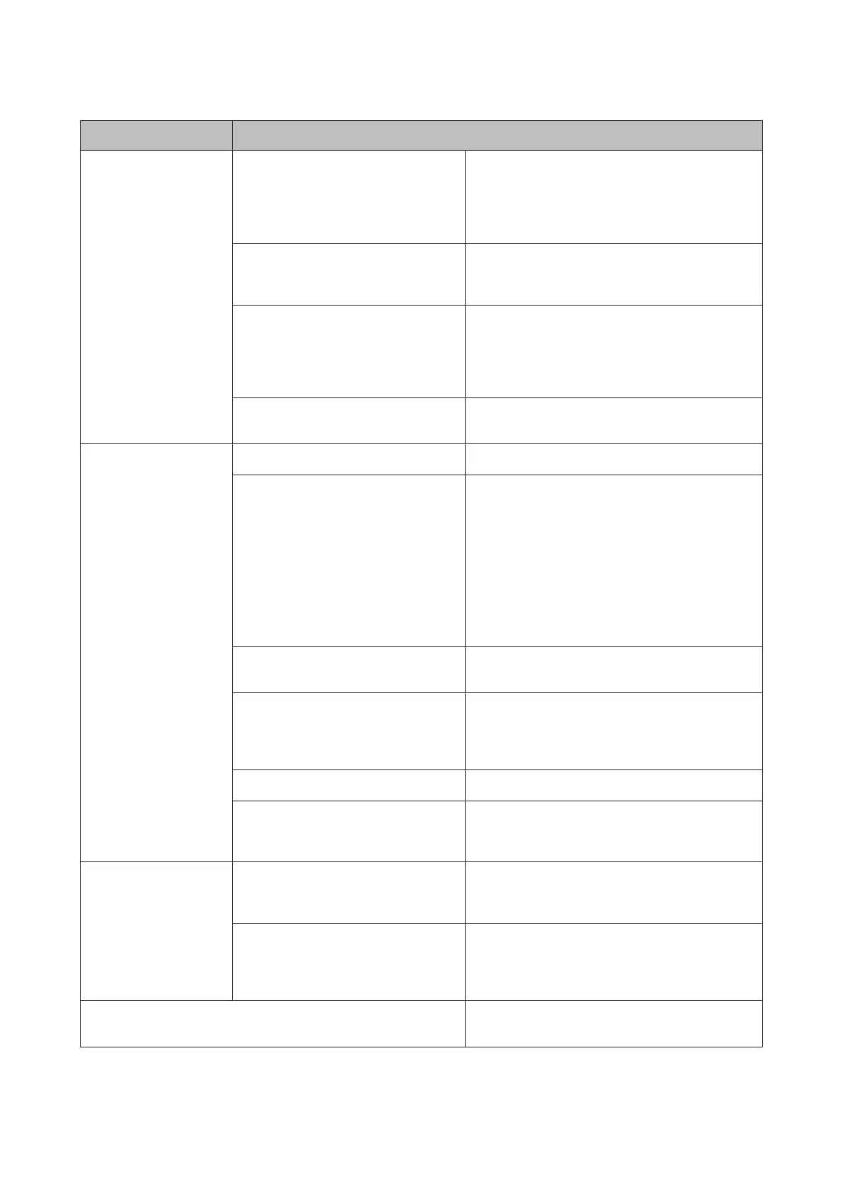 Menu Setting Item and Description