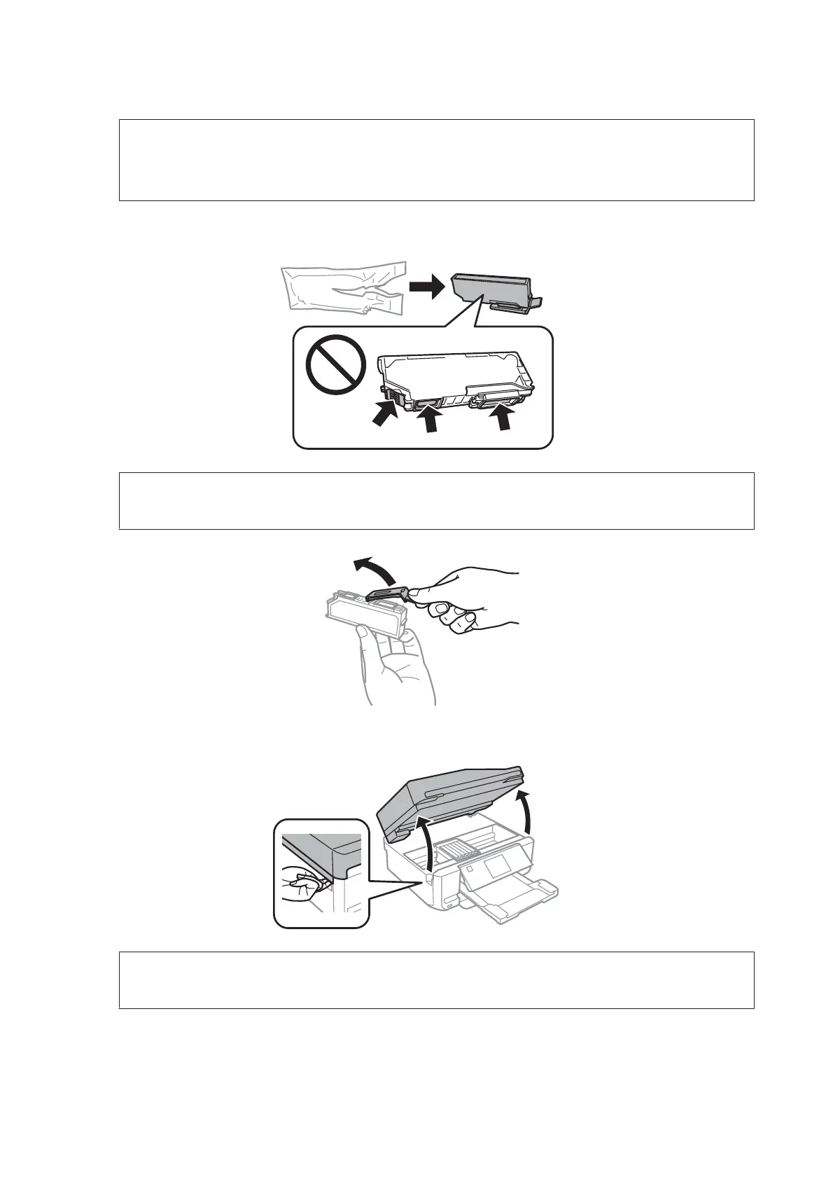 ❏ Do not shake cartridges after opening the package, as they may leak.